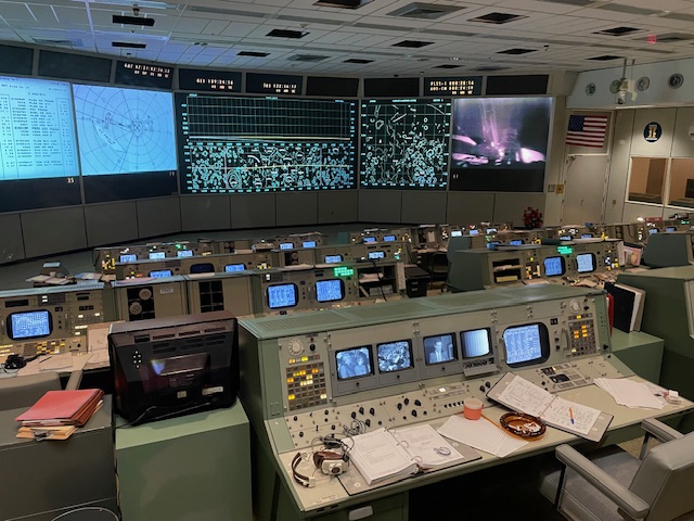 アポロ11号が人類初の月面着陸を成功させたときに、アームストロング船長の第一声は「ヒューストン、こちら静かの基地。イーグルは着陸した (Houston, Tranquility Base here. The Eagle has landed.)」と通信を交わしたのがここの管制センターです。その時に見た管制センターがそのまま保存されており、テレビの映像で繰り返し見たシーンがよみがえって来ます。