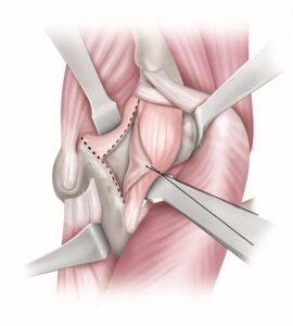 近年では、筋肉の完全温存のみならず、その深層にある関節包靭帯の温存手技にまで尽力することで、更なる関節の安定性が獲得できるようになっています。