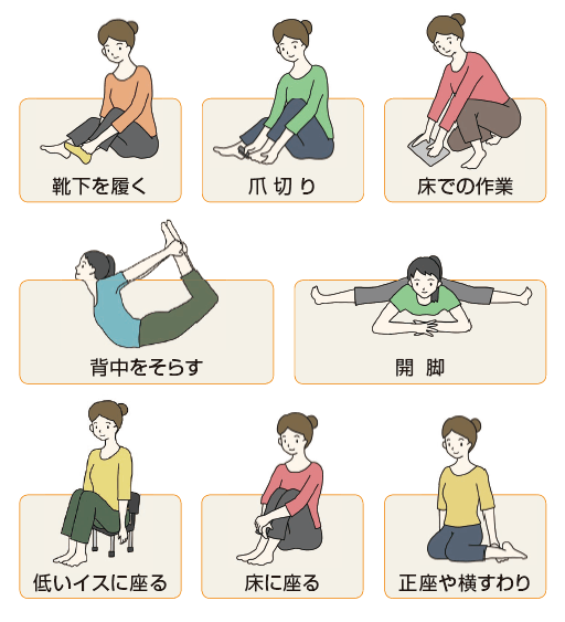 人工股関節置換術の術後は一般的に、脱臼のリスクが高まるため正座を禁止したり、床での生活を禁止したり指導されることがあります。